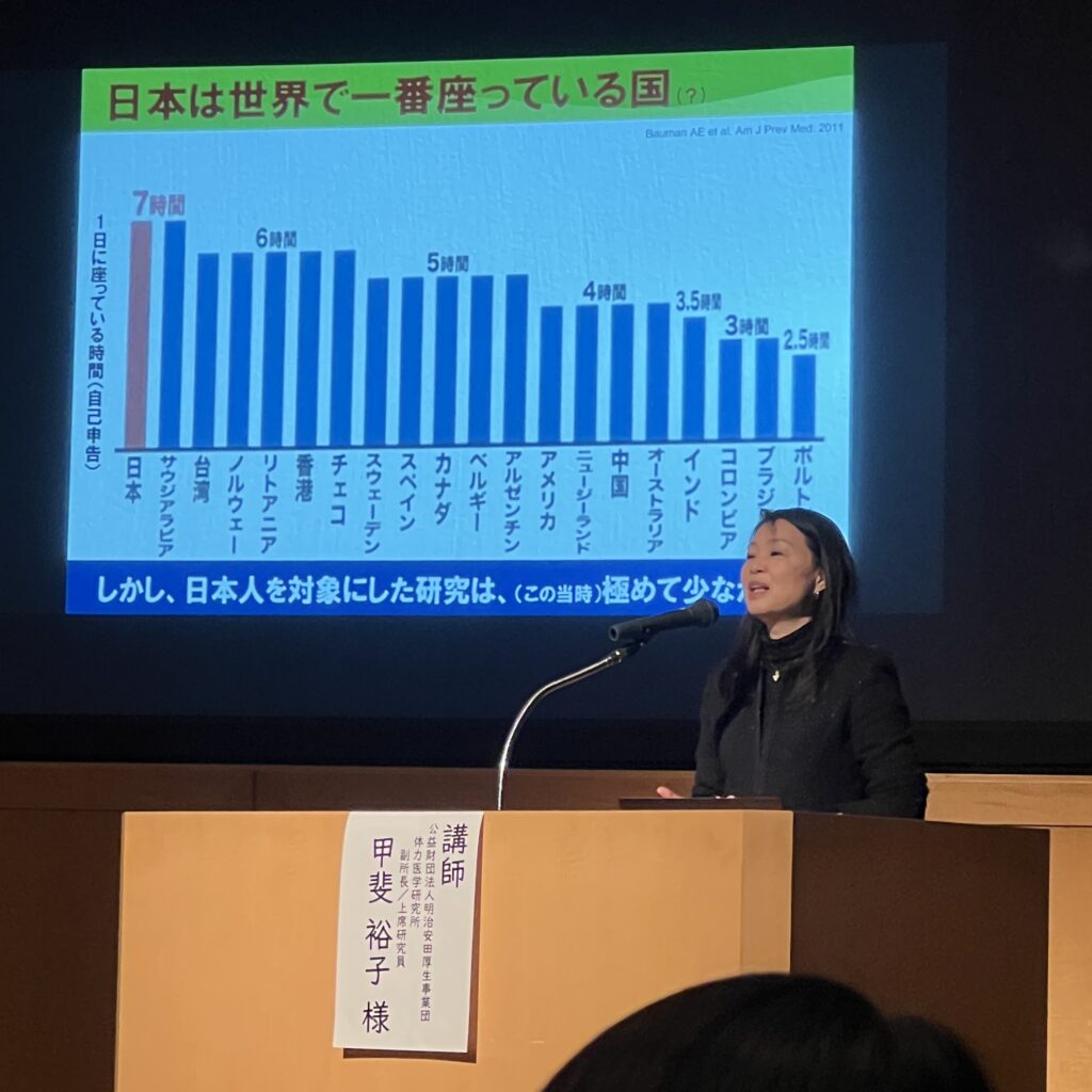 会場では、甲斐裕子先生より、日本人の生活習慣や健康データをもとにした興味深い研究結果が紹介されました。